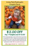 Irvine Park Railroad Pumpkin Patch – has FREE admission and many fun activities! Post coupon and here is link: