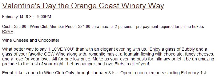 My husband and I always love Valentine’s Day as it is the day of love, but we both believe that everyday you need to treasure the one you love. When in love every day should always be Valentine’s Day in terms of trust, love and respect.:) Below are a variety of different menus and deals for several different restaurants in Orange County, California. 🙂 FOR MY 2014 VALENTINES DAY POSTS GO HERE –> VALENTINE’S DAY 2014 PART 1 MEALS & DEALS & 2014 PART 2 GIFTS & ACTIVITIES.