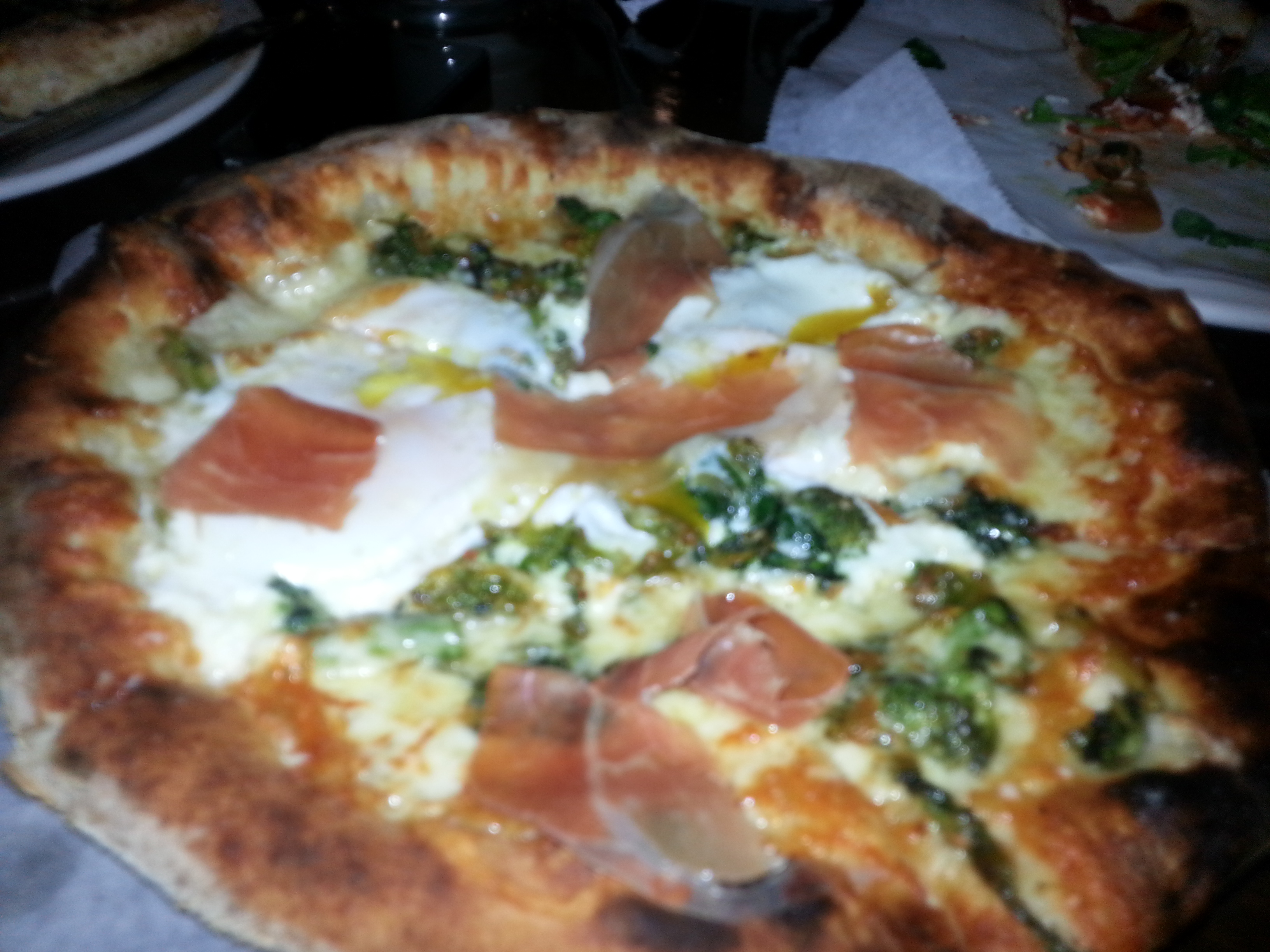 The Green Eggs & Ham pizza included braised rapini, farm egg, & Zoe’s natural