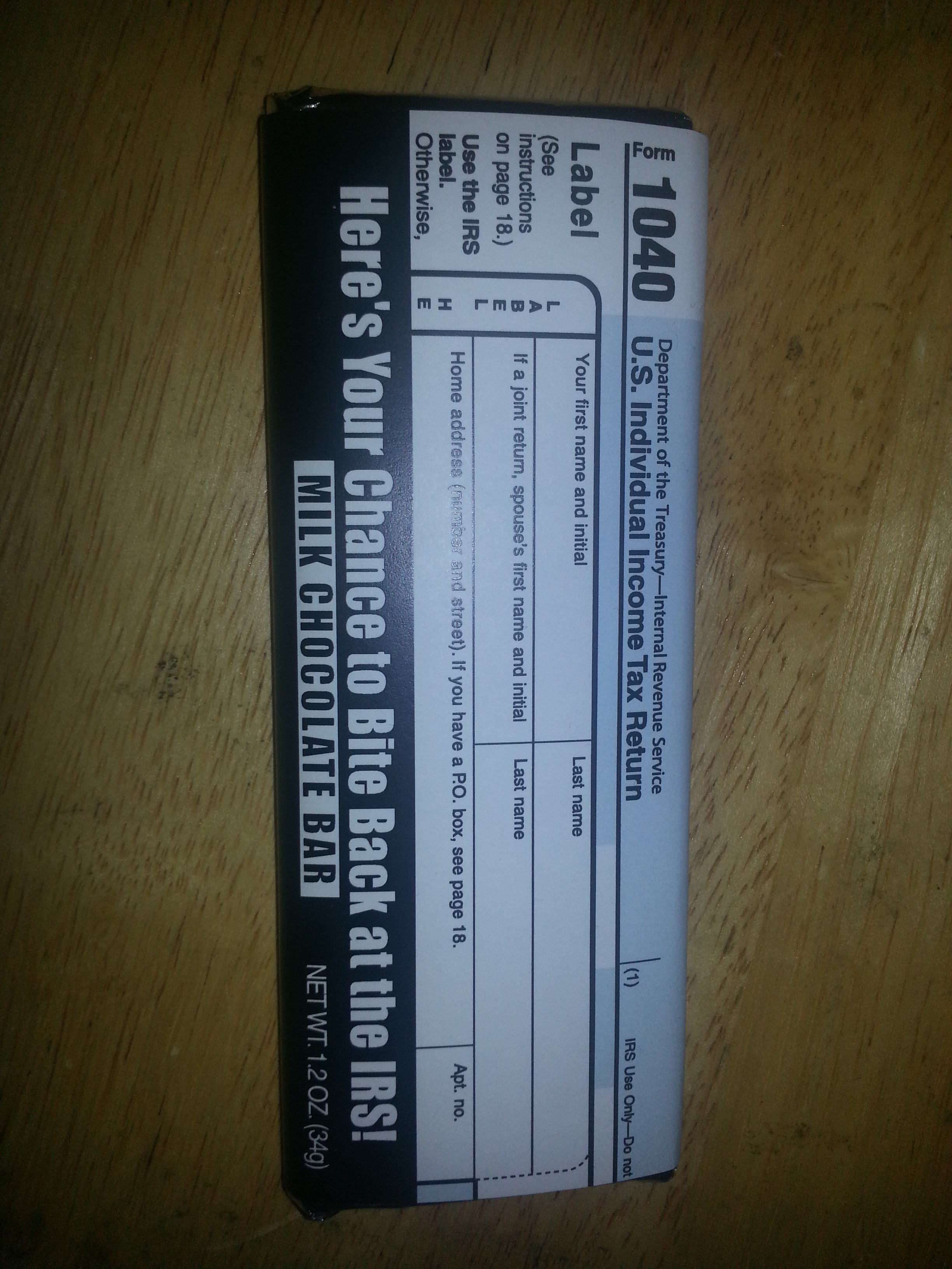 Every year Bob has a special gift for us, which is an awesome pen with his services info on it, two years it even was a light up pen…totally cute. This year he gave us an adorable taxes candy bar (cute wrapper) in either milk or dark chocolate.