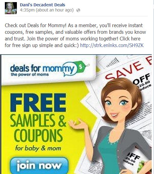 Get some great samples and freebies here! All you have to do is sign up for free. Click on this link to go to my fb page to sign up for free through url on picture post 🙂