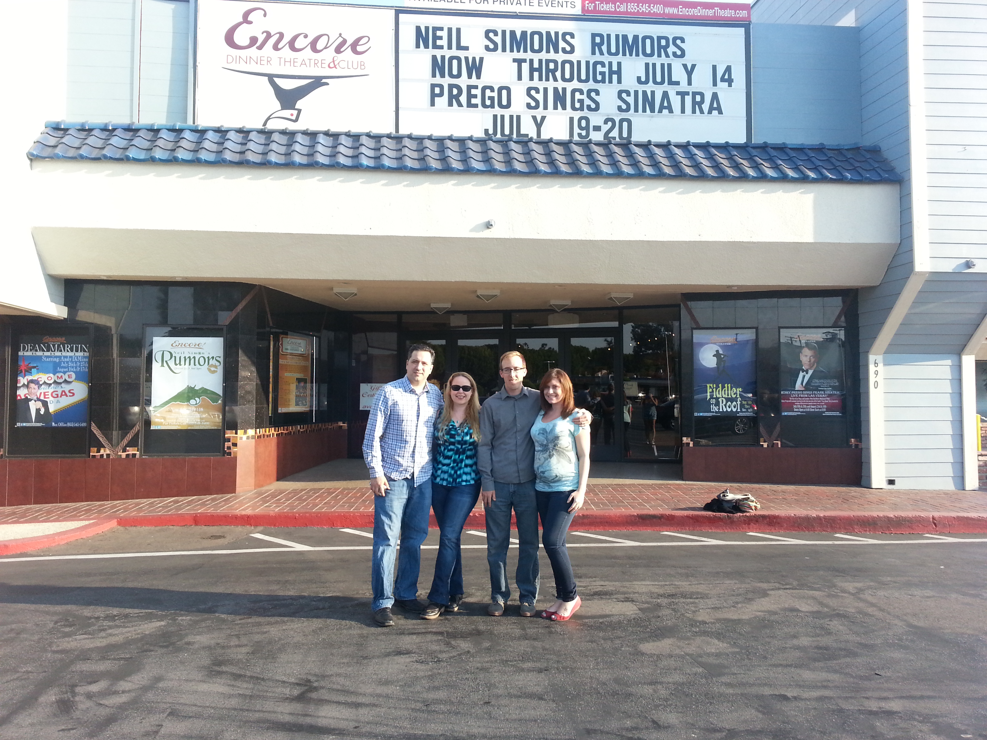 Upon being invited to the Encore Dinner Theater in Tustin, California 2 weeks ago, I was remembering when I first started dating my husband because he had taken me to this specific dinner theater 12 years ago. It was formerly called, “Elizabeth Howard’s Curtain Call Theater.” From 1959-1976, the theater was simply a movie theater. In 1978 the building was remodeled into a dinner theater and was called the Cabaret Theater. Soon after in 1980, The Curtain Call Group took it over