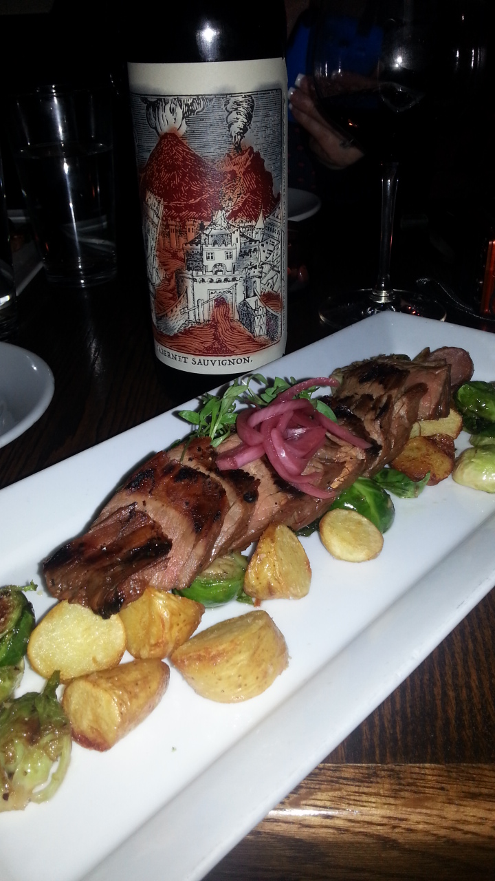 LOVE the Paso Robles wine region.  This wine was bold in flavor with many fresh fruits, yet a tobacco smoky blend arrived on my tongue and there was a pleasant soft finish. I would definitely buy this bottle!  The Cabernet Sauvignon was served with a Bulgogi marinated Flank Steak served with fingerling
