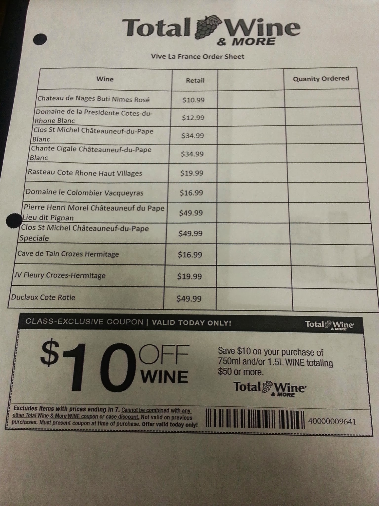 I was personally interested in a class on French Wines called, Romancing The Rhone” that was being offered at the Total Wine & More Huntington Beach Location on the date and time I happened to be available. Although there are a variety of different classes to choose from, this one stood out to me because when I was in France in 2010, we traveled to Nice & Paris, but since we were on a whirlwind trip of so many different European countries, I did not have the time to sample the wine properly. All I had the opportunity to try were some crappy French wines at touristy cafes that were sitting on top of the Louvre or at the touristy beach area in Nice…hence my passion for the Romancing the Rhône’s class was born!