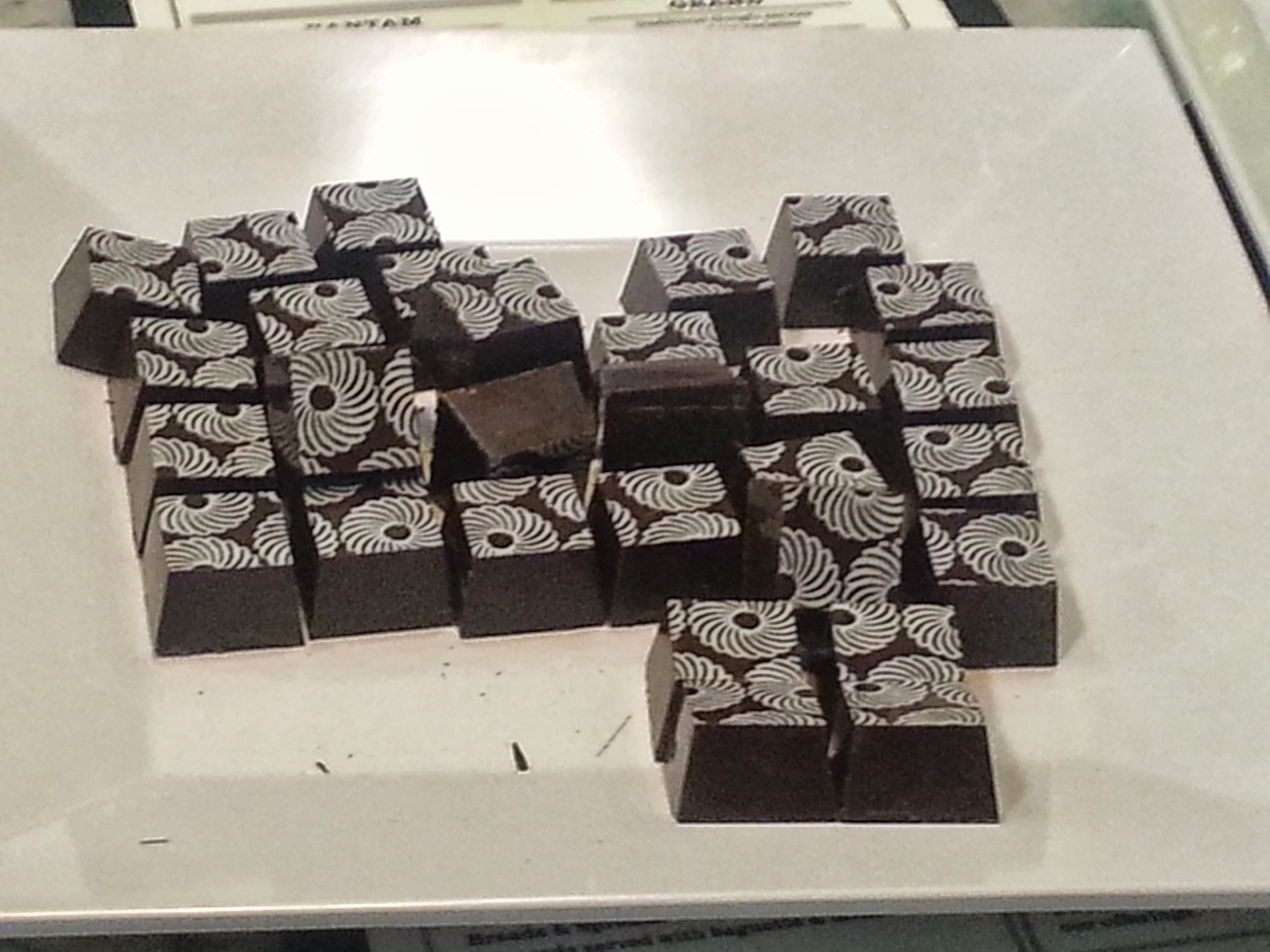 Chocolates served at Michelle Haut Chocolat include a fabulous variety of all sorts including gourmet truffles, handmade caramels, haut desserts, M bars in a variety of unique flavors such as rose petal and tea smoked salt… The company makes their own custom chocolate blend that utilizes 73% bittersweet chocolate from Belgium! This makes me smile! Belgian chocolates have always been a weakness of mine. 🙂
