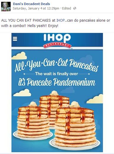Right now ALL-YOU-CAN-EAT pancakes is going on at IHOP. Get em while they last!
