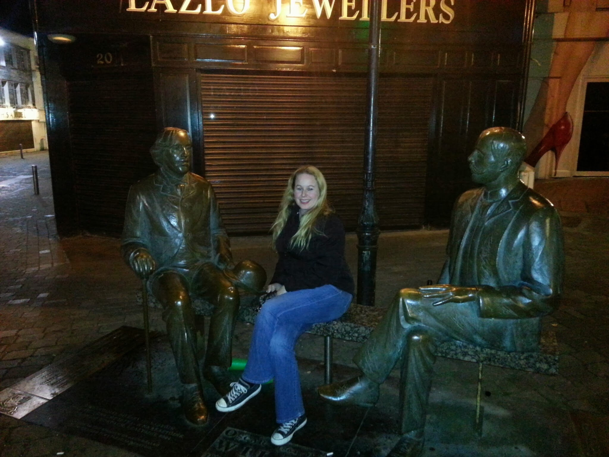 We returned back to our hotel in the early evening and ventured off to find a new restaurant a little further in town that we had heard was quite a hip place with a wine theme. (We are both huge wine people, so we were excited) The best part of this place is that it was open till midnight and there were many other bars in the area that stayed open later. We were happy to find this treasure! The restaurant was called The Rouge Galway and had a French theme. Although the menu choices were limited to one 3 course meal option with 2 choices, the food was fabulous, fresh, fast and a great price! I totally recommend it! I had a steak for my main dish and of course I ordered a delectable cheese plate to go with my wine! J Our waitress was so friendly and tended to all of our needs and was a student studying in Ireland, but came from France. Check out our pictures with her. 🙂