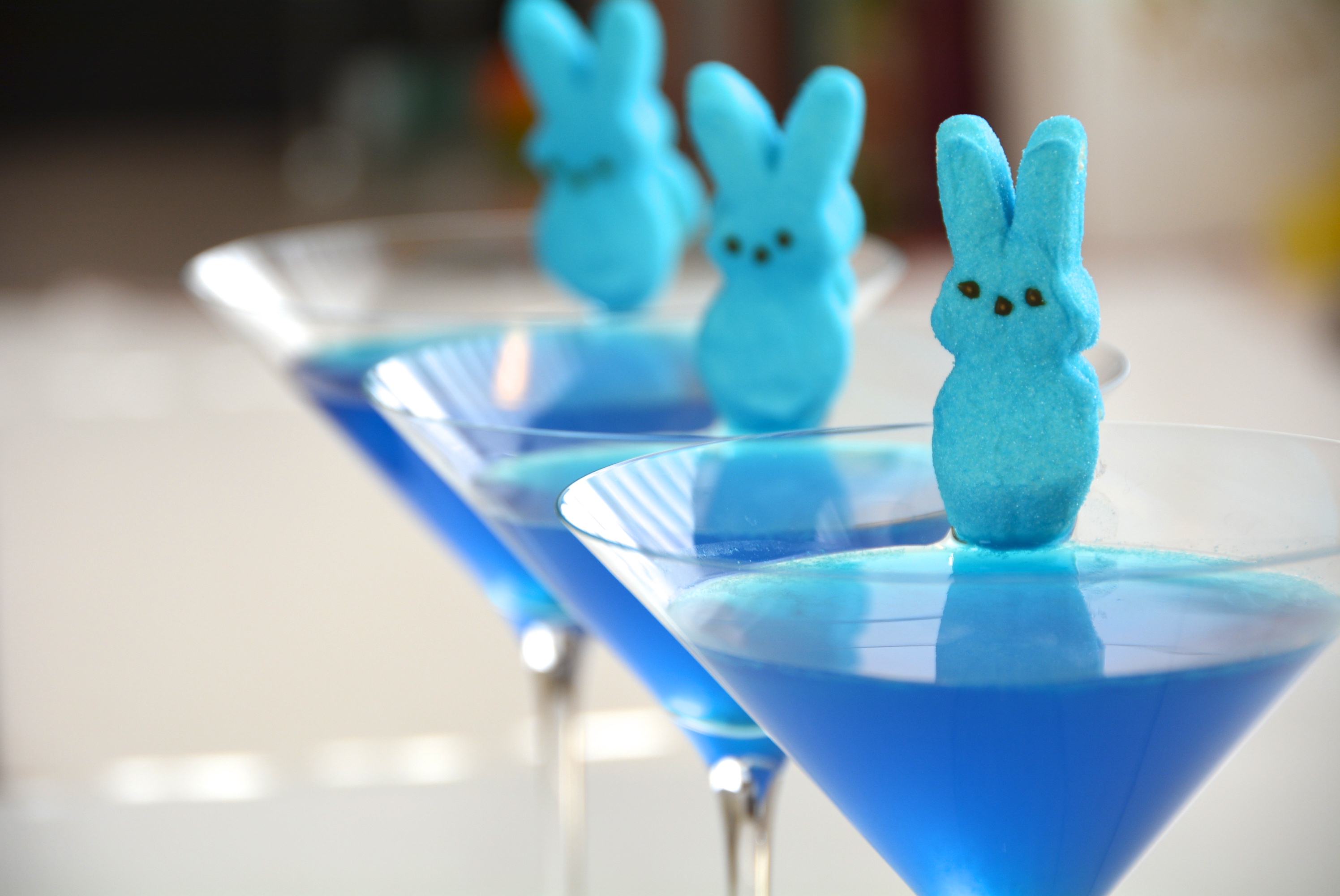 Directions Fill a martini shaker with ice. Add the vodka, Margarita mix, blue curacao and mint simple syrup to the ice, then shake for several seconds to mix. Strain into a martini glass and garnish with a blue Peeps.