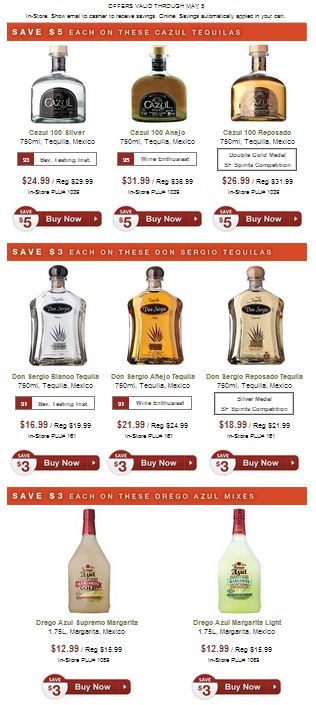 Of the margarita recipes above, my personal favorite was the Grand Margarita and I have great news for you about that margarita specifically!! Normally the bottle of Don Sergio Blanco Tequila costs $19.99, but through May 5 it is on sale for only