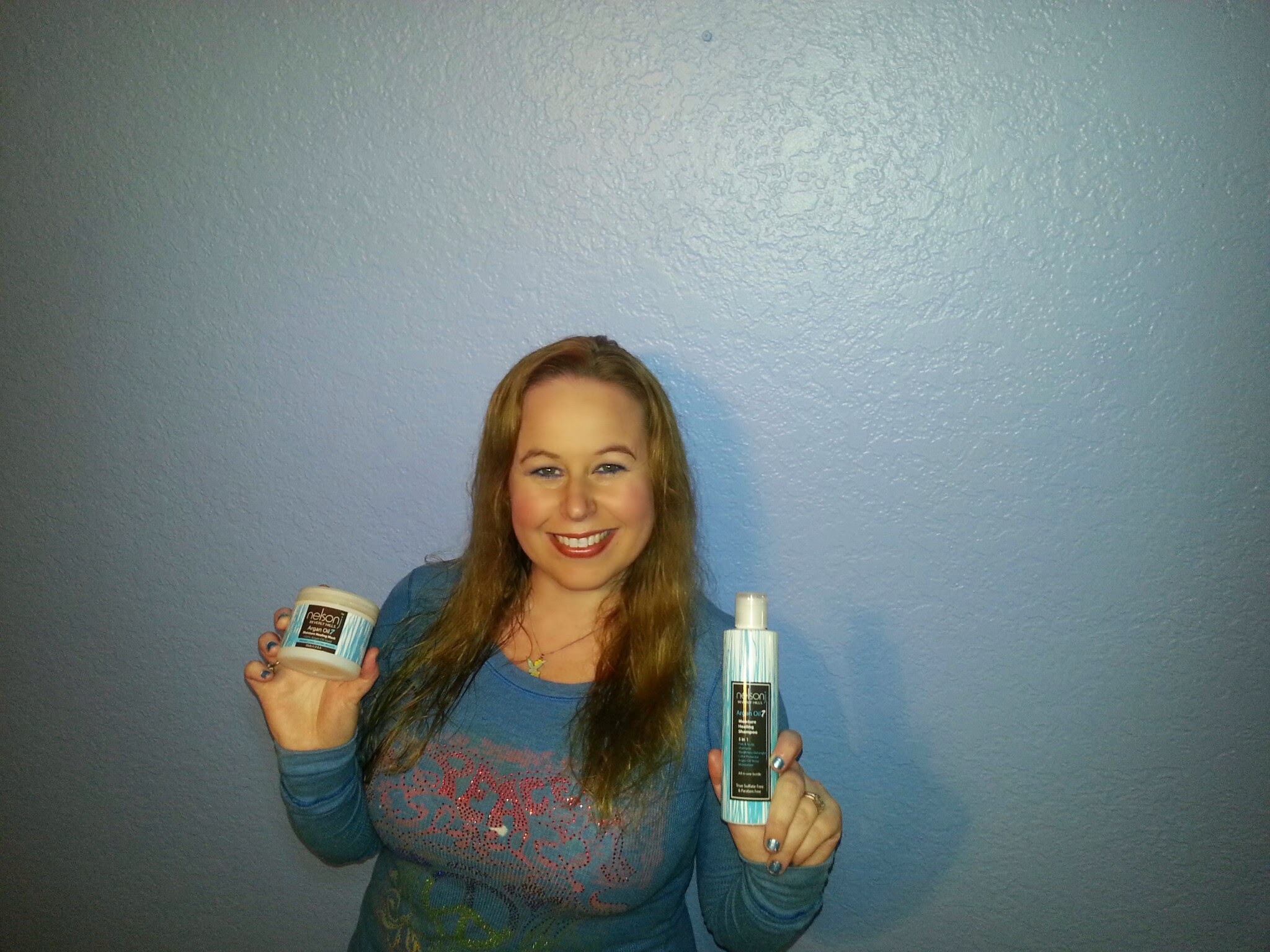 When I was recently approached to review some hair salon products from Nelson j Salon in Beverly Hills, I was super stoked about the idea of trying some new product to tame my over processed and dry hair. I will have you know…I do have my fabulous husband trim my hair every other month with professional hair scissors I bought in a salon, so I do not ever go out looking like a rooster…just an fyi…but my hair overall is quite dry and way to processed, so when Nelson j Salon sent me their Argan Oil 7 revolutionary 5-in-1 Moisture Healing Shampoo in Natural pomegranate scent and their Argan Oil 7 Coconut scented Moisture Healing Mask, conditioning treatment which hydrates and moisturizes dry damaged hair I kind of started jumping for joy!