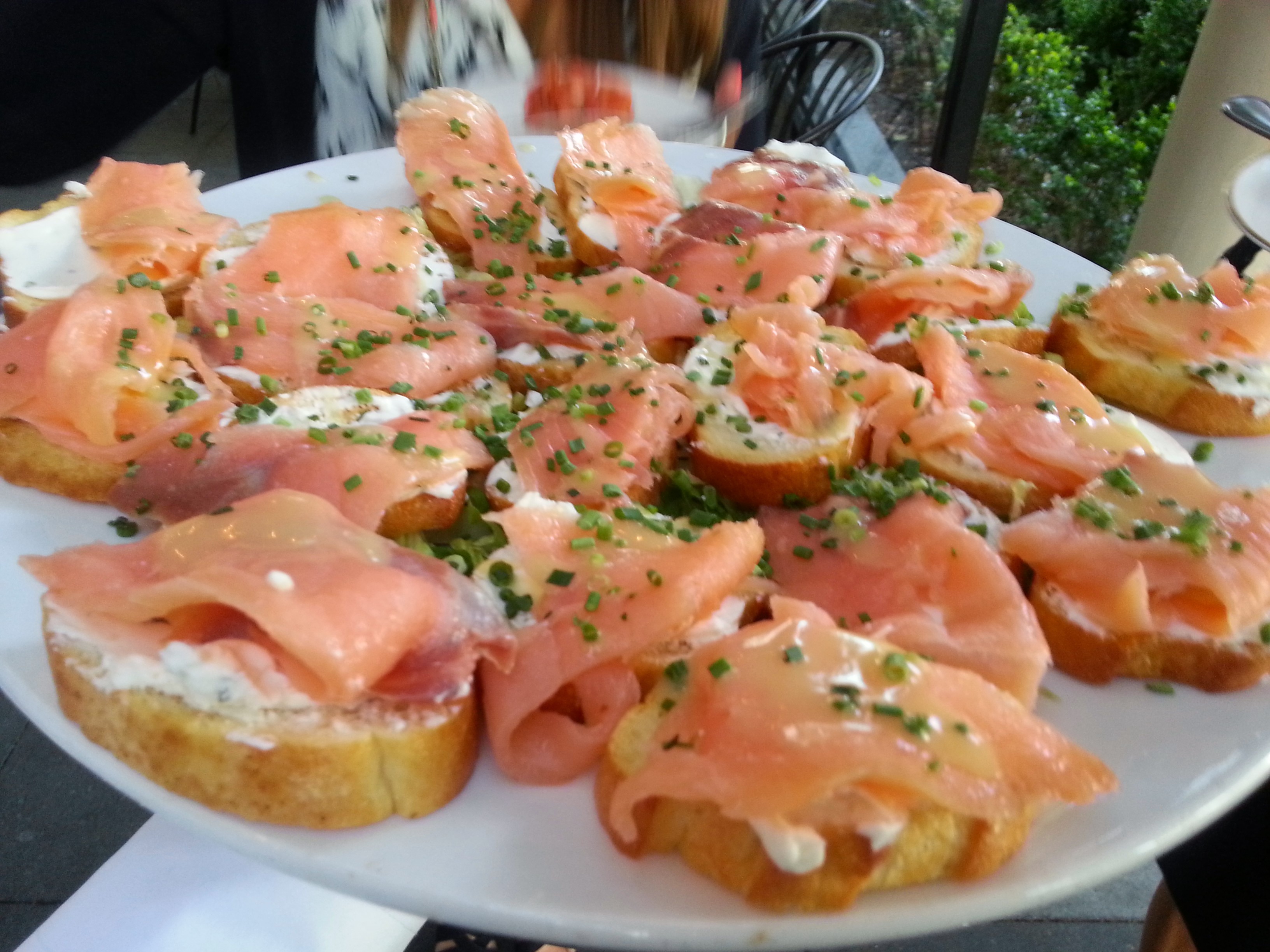 The spring menu we tasted included a variety of Hors d’ oeuvres, such as charcuterie, cheeses, and bruschetta, but my personal favorite was the crostini smothered in smoked salmon and cream cheese! I am obsessed with anything smoked salmon and cream cheese, but I was quite impressed by the freshness and flavor of the delectable bites I sampled. These appetizers were paired with one of my favorite wines designed by Francis Ford Coppola. The wine is a nice light white that is sparkling called Blanc de Blancs. To read more about Francis Ford Coppola Wines, click here –> FRANCIS FORD COPPOLA WINES.