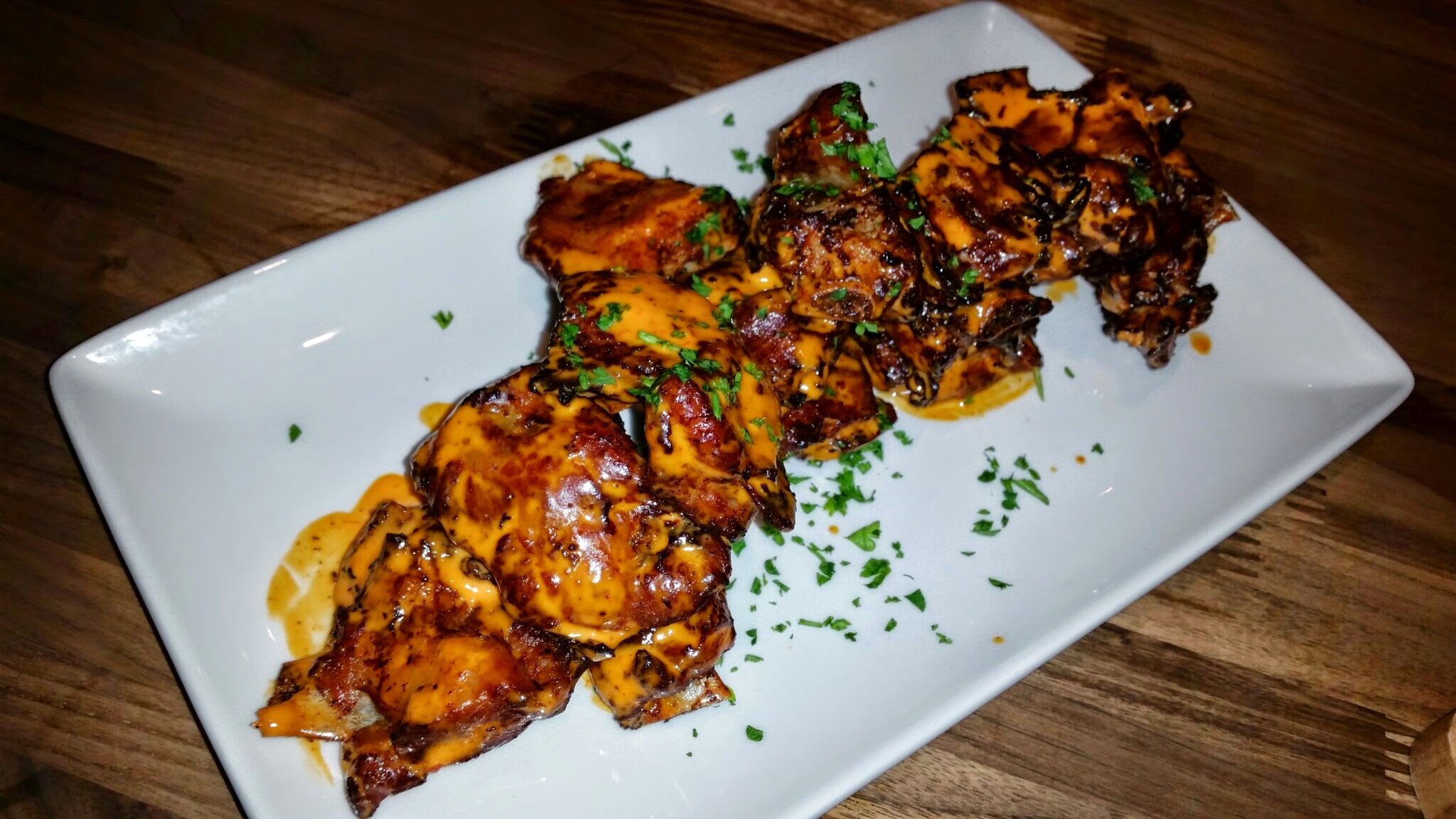 surprised in that the sauce did not burn my mouth and instead it gave off a pleasant flavor on my tongue. I really enjoyed the riblets! The truffle fries had a creamy havarti sauce which was very nice and mellow rather than having super sticky cheese hanging from your lip like many nacho and cheesy fries plates. The truffle flavor was subtle and blended very nicely with the green onions and fresh hand cut fries.