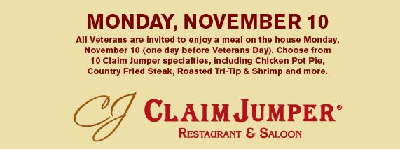 Active-duty and retired military can dine for free on Tuesday, the 11th and get a free entree by presenting a military ID or proof of service.