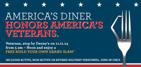 On Tuesday, active, inactive and retired military personnel can get a free Grand Slam breakfast from 5 a.m. until noon at participating Denny’s locations.
