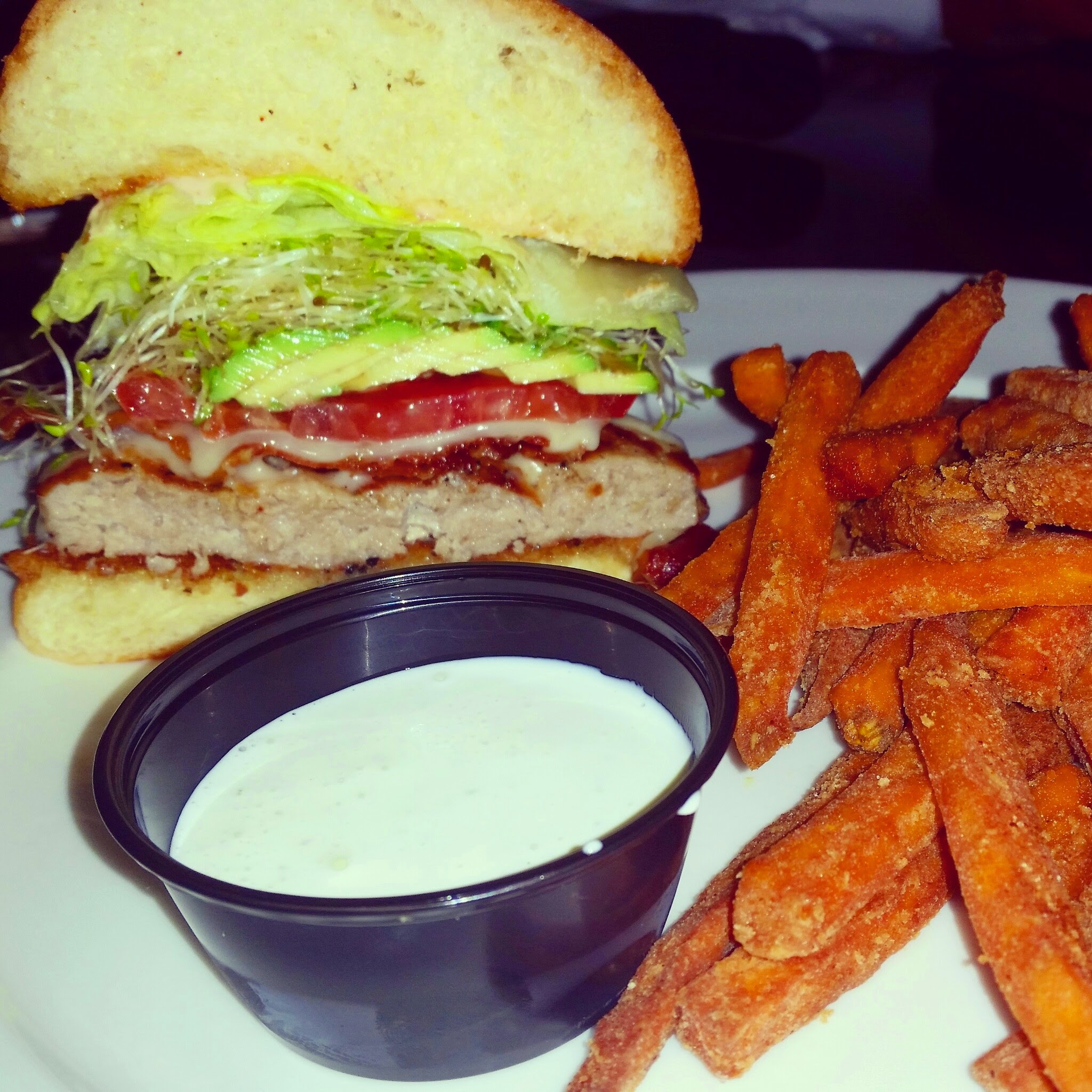 Lastly, we had the delicious Turkey Burger with lettuce, mayonnaise, sprouts, Monterey jack cheese, and bacon. You can select any burger style and substitute a turkey patty. 🙂 I do not usually order turkey burgers when I am out, but I was so pleasantly impressed, I may just start doing so! The meat was thick and the burger was juicy! I honestly think this was one of my most favorite items I tried for the afternoon!