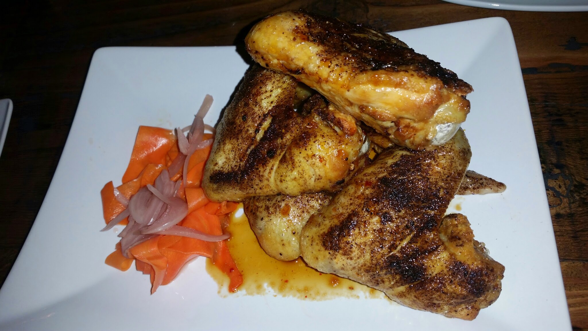 We ordered the Jerk Wings which were prepared with a jerk spice rub, honey glaze and pickled vegetables. This was a very impressive looking dish as the chicken leg and wing were still attached which definitely seemed to make the dish have much more meat. The only thing I would add with this dish is a side of sauce. The meat was tender and came off the bone quite easily.