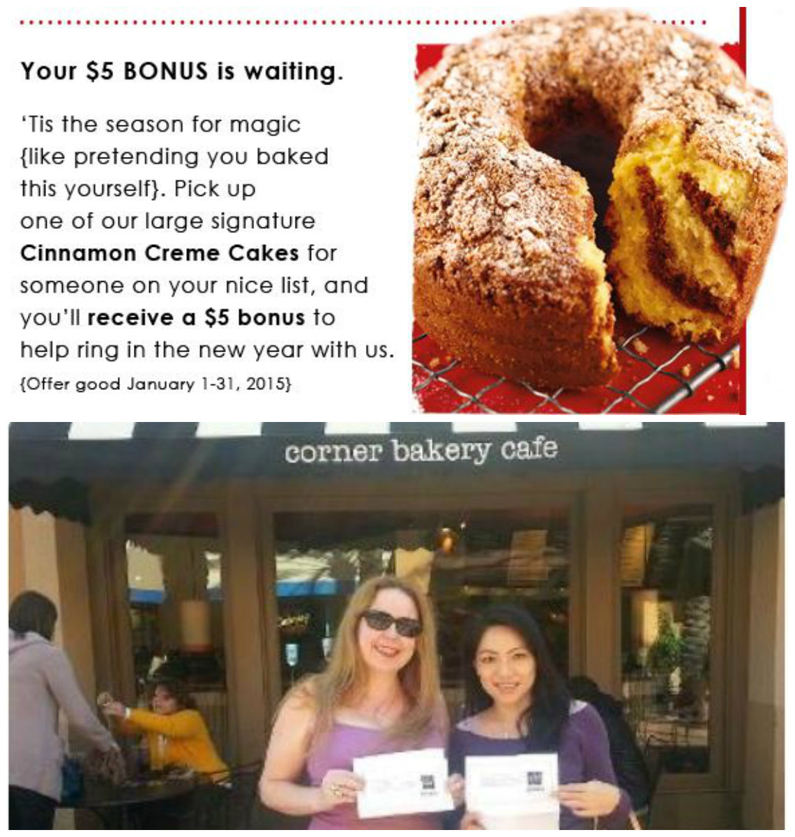 Buy a $25 gift card and get a $5 bonus card free. Be sure to try one of Corner Bakery’s seasonal treats when you stop by.