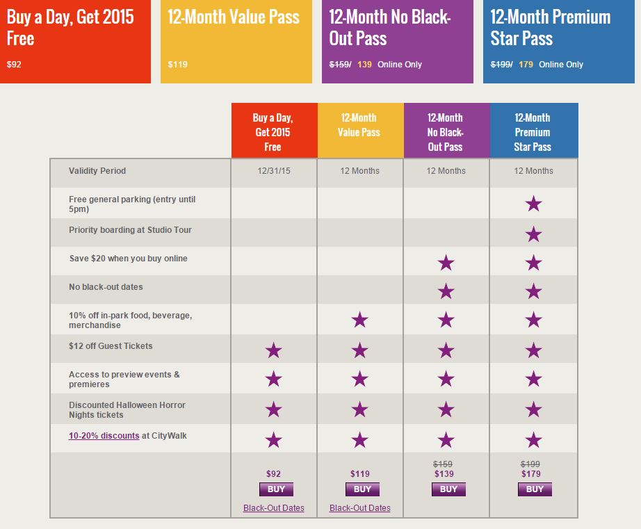 For the year, 2015 Universal Studios has a “Buy a Day, Get 2015 FREE” Promo!! All you have to do is pay for a 1 day pass for $92 and you can come back throughout the year whenever you choose, with the exception of blackout dates. To see all blackout dates, click link here –> Universal Studios Blackout Dates. I will update any new available deals for 2016 as they are released. Please check back at my site for updated deals in the future for this program.:)