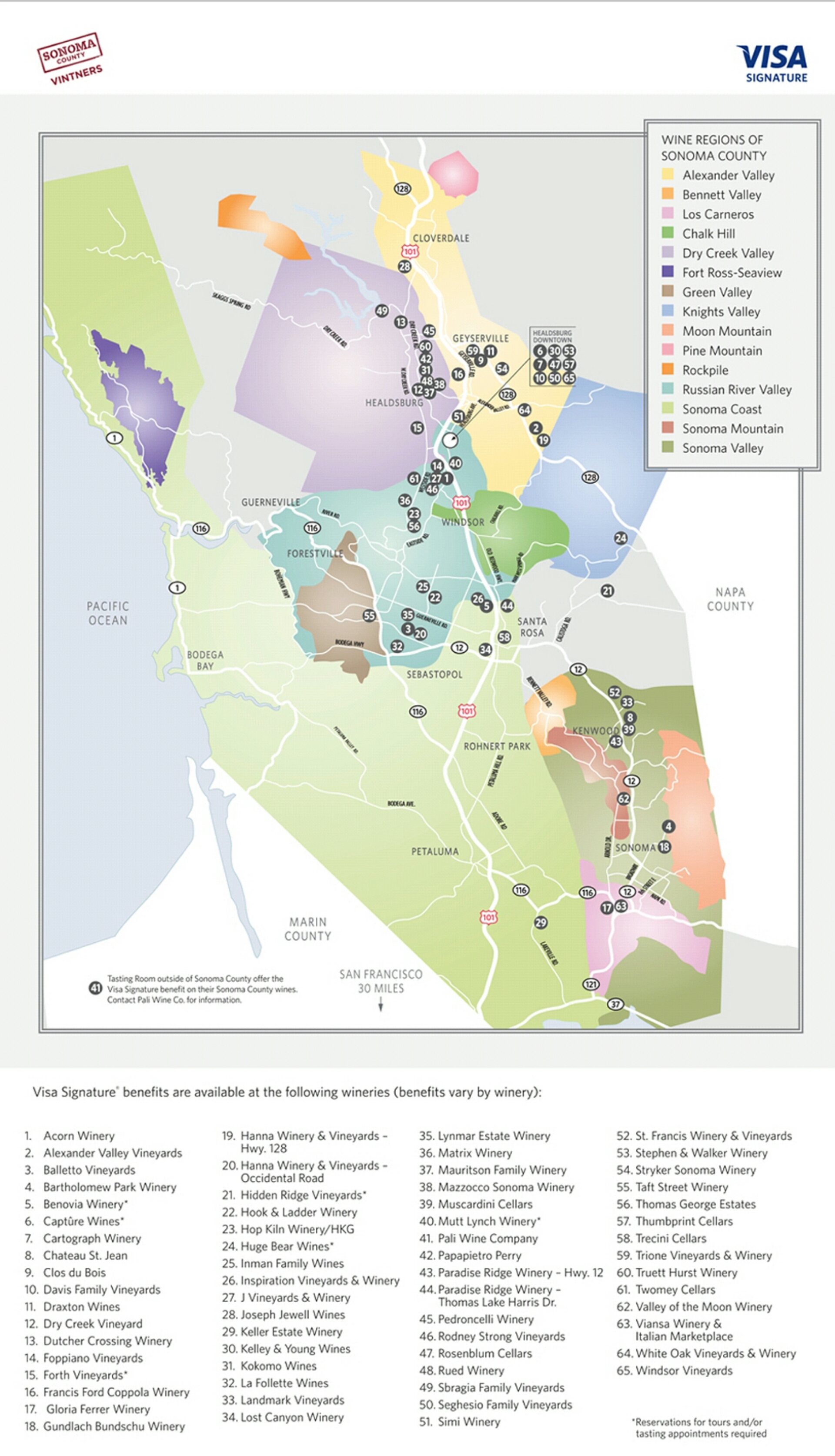 Example: Visa Signature and Sonoma County Vintners offer cardholders the following year-round benefits at over 60 select Sonoma wineries which include: