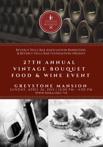 The 27th Annual Vintage Bouquet Food & Wine event hosted by The Beverly Hills Bar Association is back! I had such a blast at this event last year and I am very excited to be invited back to cover this event once again! I hope to see many of you there and meet many new friendly faces! This event features leading wineries and restaurants throughout the Los Angeles area and proceeds go to support the Beverly Hills Bar Association which supports & assists to fund a variety of community outreach programs and grants, as well as Pro Bono Legal Service Programs which you can read about below. 🙂