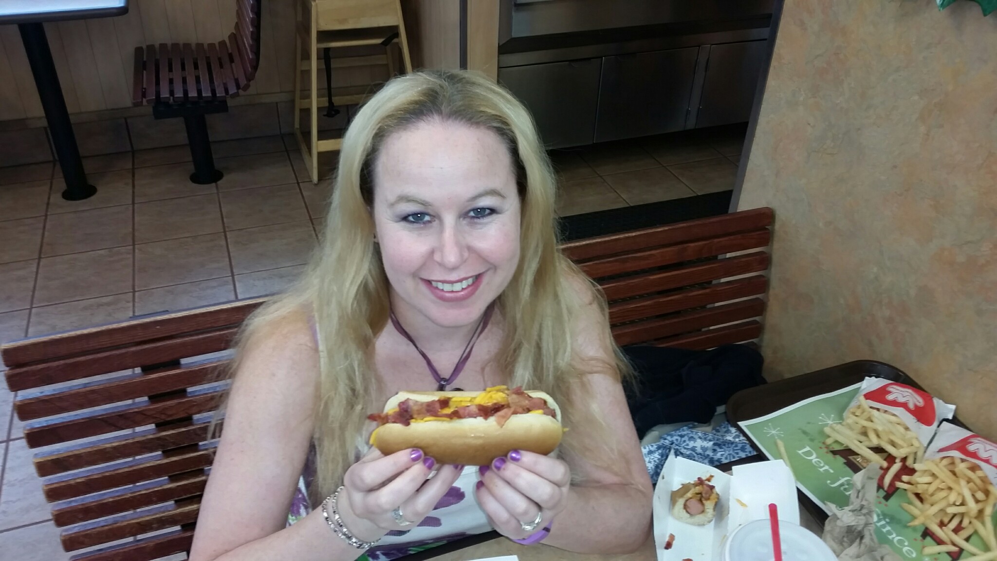 My husband and I went to Wienerschnitzel together and ordered all five new chili cheese dogs to share with one another. I knew right off the bat which ones would be my faves, because of the ingredients in which I am quite fond of! I was all over the Bacon Ranch Chili Cheese Dog because how can you go wrong with melted cheese, ranch and bacon? I would say my second favorite was the Loaded Bacon Street Chili cheese dog…this actually surprised me! I am not a huge mustard lover, but the blend of grilled onions, bacon, ketchup, mustard, mayo and grilled onions really went quite brilliantly together! See each of these five Chili cheese dogs below.