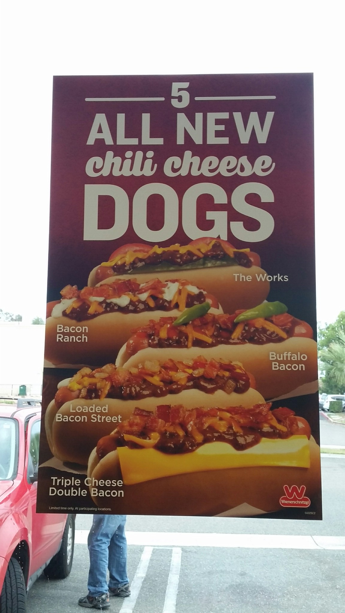 I recently went in to visit my local Wienerschnitzel to check out the newest five chili cheese dogs being offered on the menu! When I was first contacted to come in and check out these new tasty morsels, I was unsure of what to expect as I had not devoured a chili cheese dog in quite awhile, but when I have in the past, I have enjoyed them thoroughly! It had been awhile since I had visited a Wienerschnitzel restaurant and I was excited to see what these new chili dogs had to offer!