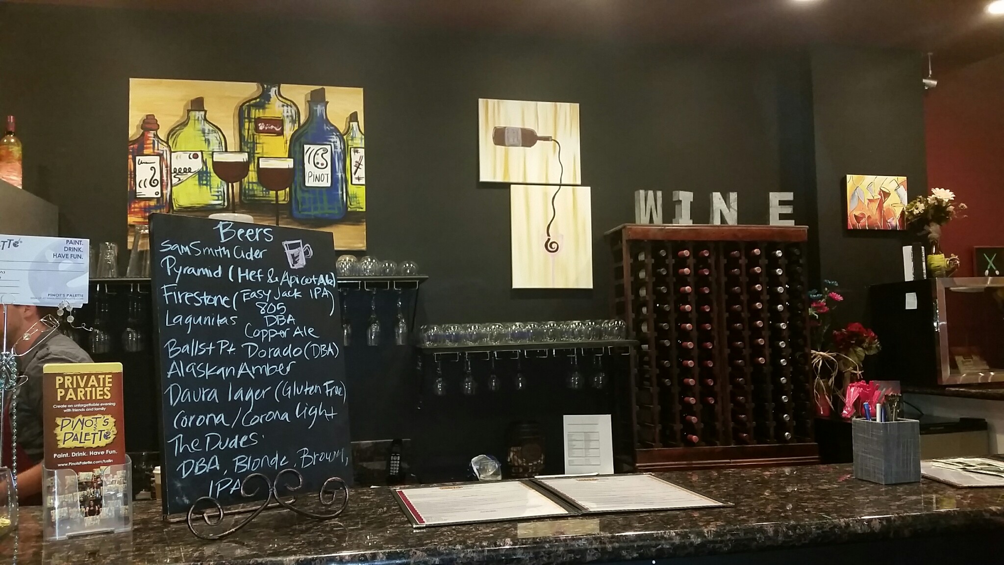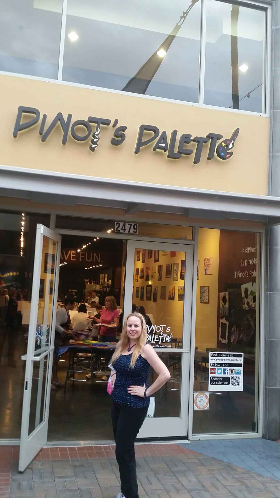 I was so excited to arrive at Pinot’s Palette as I had heard such good things about them and I had recently seen on facebook that they had won the Tustin Chamber of Commerce Business of the Year award! In addition to their win, being as gracious as the owners Scott and Cherisse Lockerd are, they also decided to offer a $10 off any future reservation for Thurs-Sun public classes until Aug 30th 2015! All you have to do is use the discount code: BUSINESSOFTHEYEAR at checkout to receive this deal! 🙂
