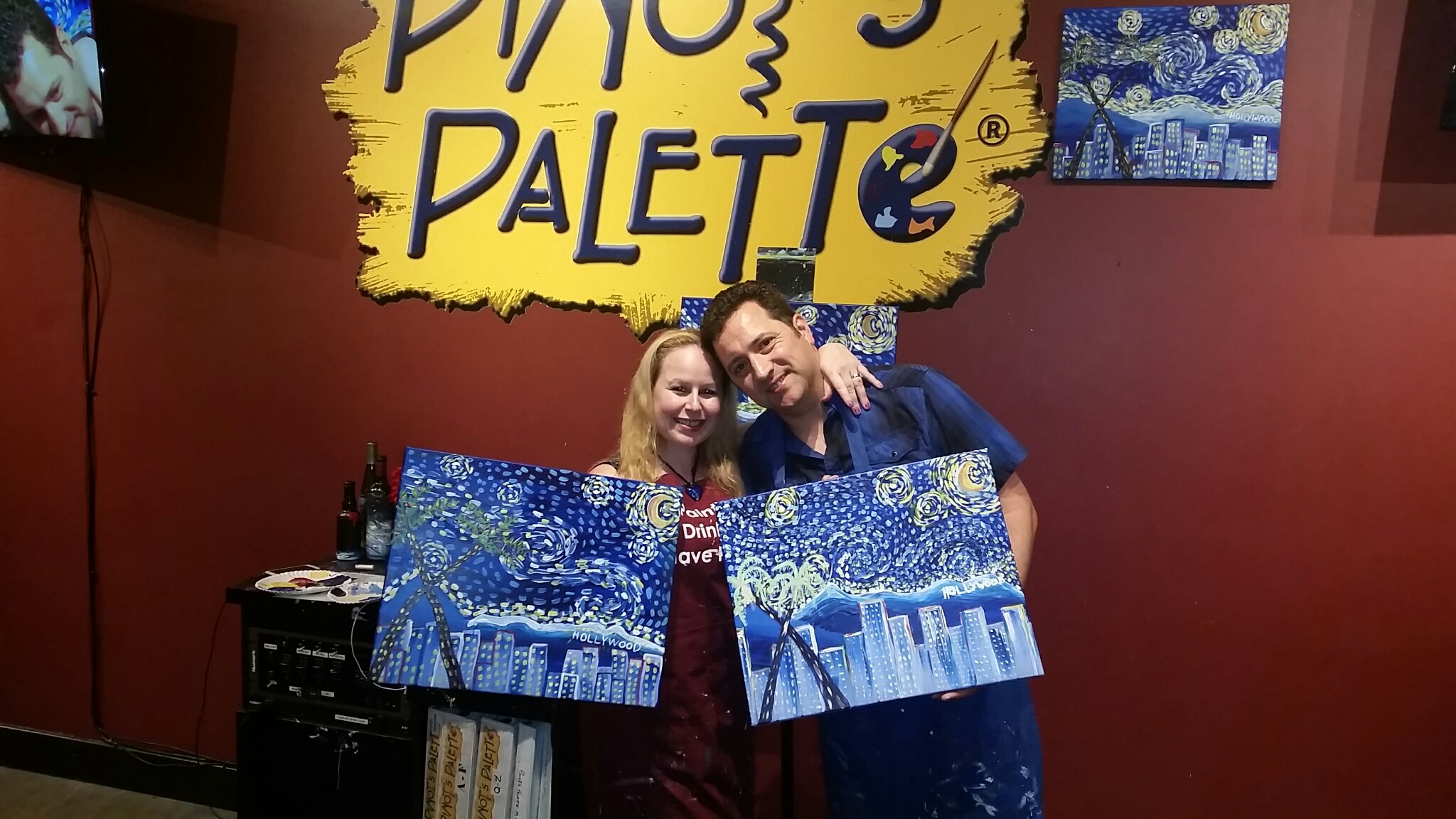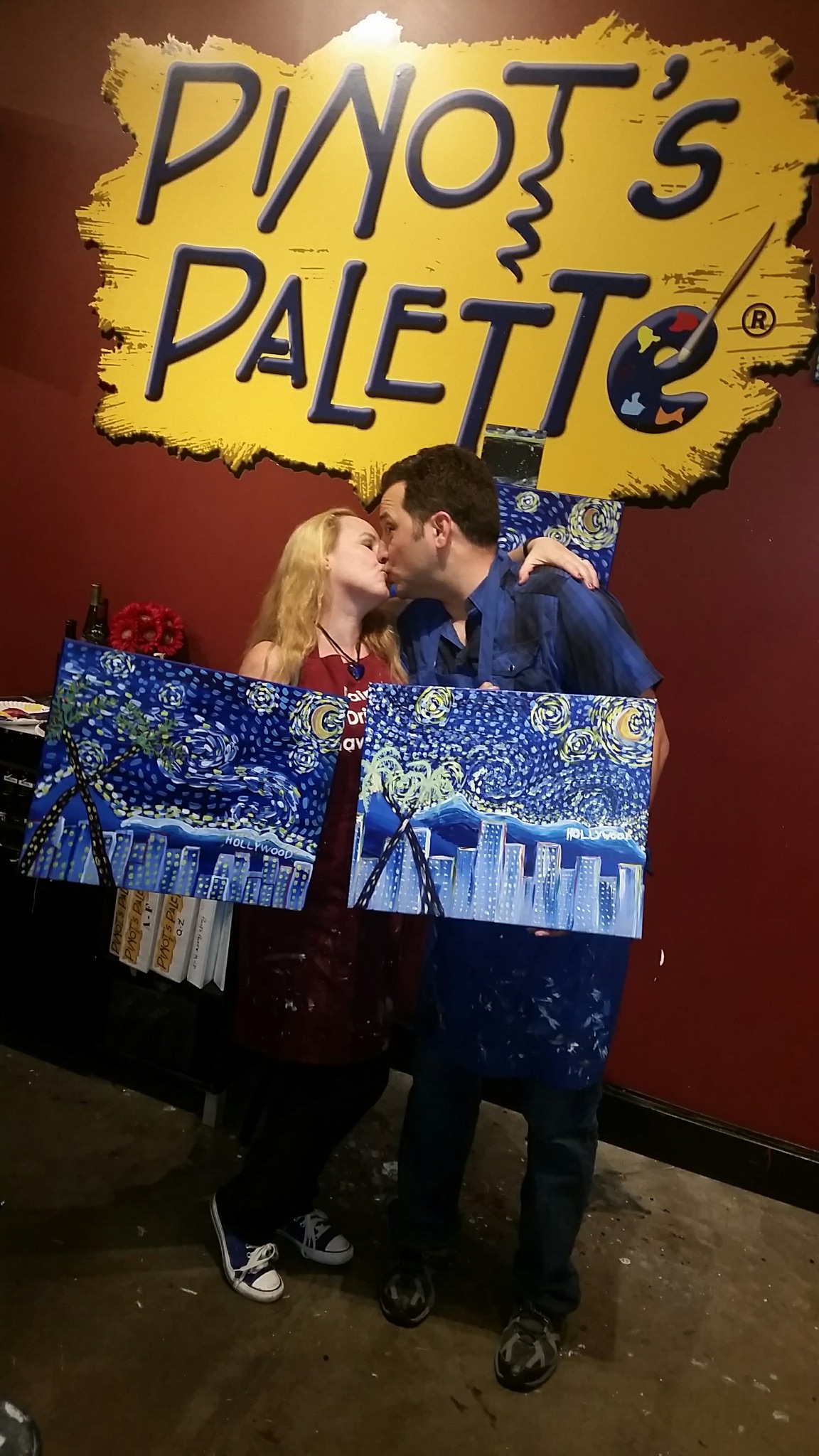 I am always looking for new fun date night ideas to do with my husband. Having known each other for 16 years now, there are not many new date night ideas that we can come up with. Earlier this year I was approached by a new business, named Pinot’s Palette in Tustin that invited me in to check out what they had to offer. In having such hectic schedules, this opportunity was put on the back burner for way too long, until last month when we sat down together and looked at the calendar and picked a date and a class that looked good to us! All I can say is that I wish I had not waited this long because this was literally one of my most favorite date nights in a really long time! We got to attend the unique experience of a painting and wine class together! As a matter of fact, I loved this place so much that I ended up buying my best friend a gift certificate to go there for her birthday!