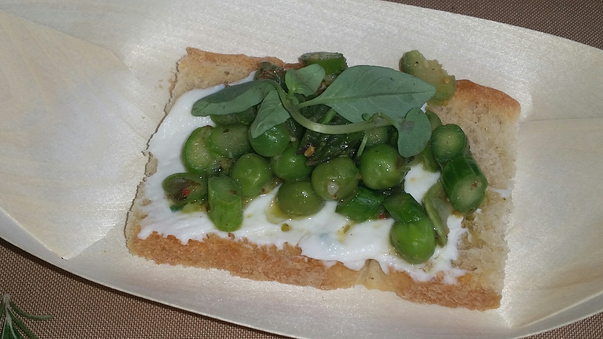 Asparagus crostini, chive, ricotta on homemade focaccia bread