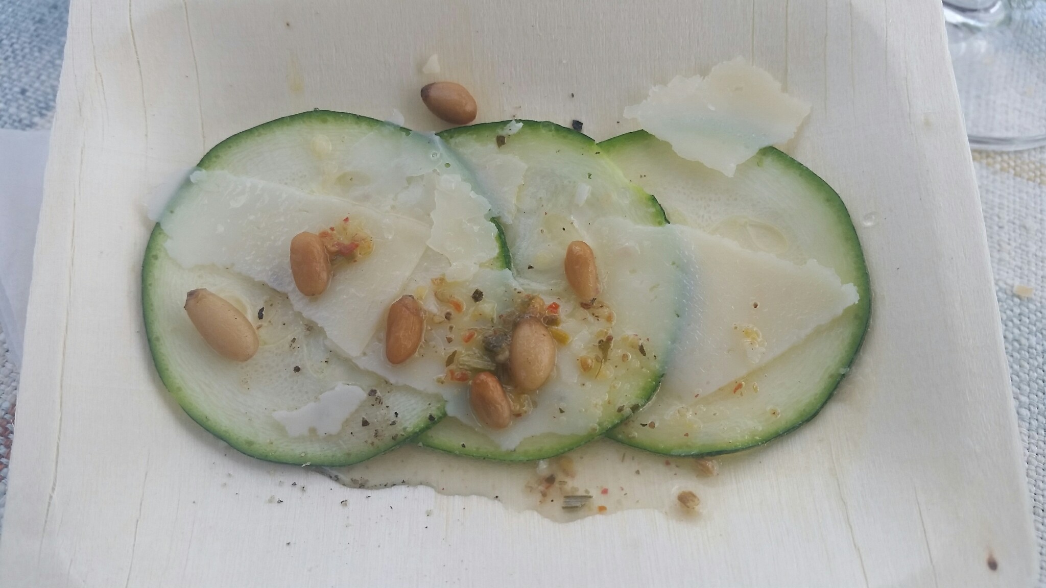 Zucchini carpaccio, lemon picholine dressing, pine nuts and Parmesan cheese