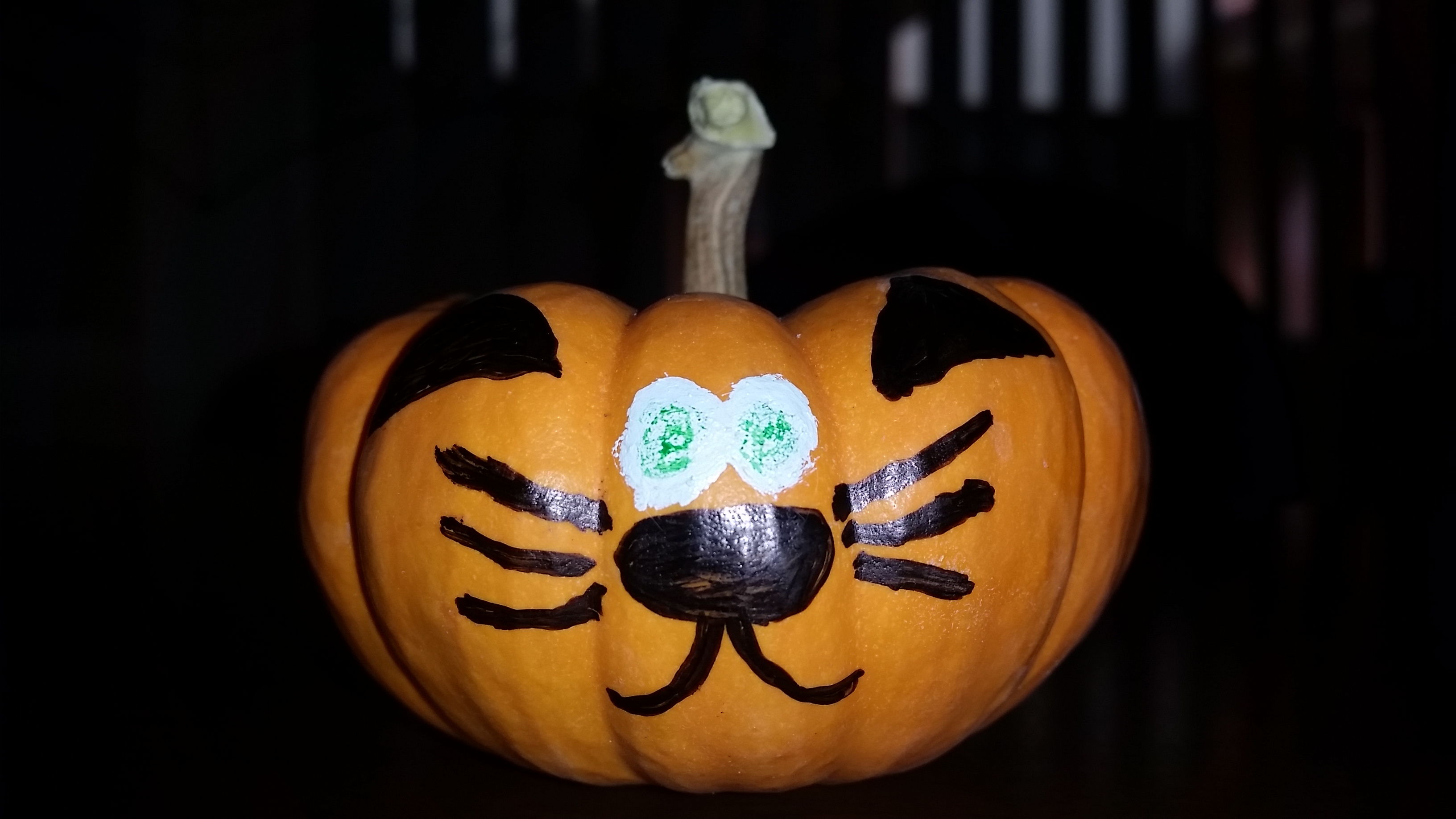 Every year I love to purchase all of the delicious squashes and pumpkins they have at Trader Joe’s. Two of my faves are the Kabocha pumpkin and the acorn squash. I also like to get a variety of mini pumpkins and gourds for my students & I just for fun! This year my mini pumpkin on my desk has a cat face painted on him. 🙂 Check him out in my photos below!